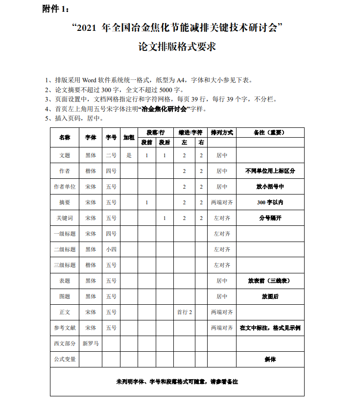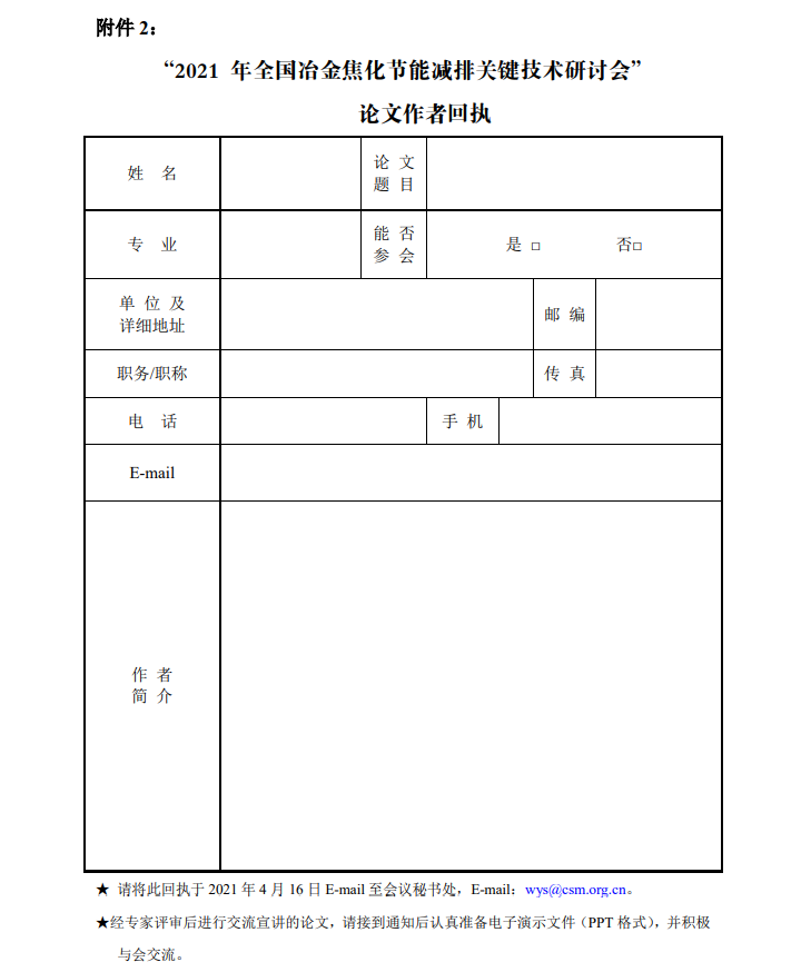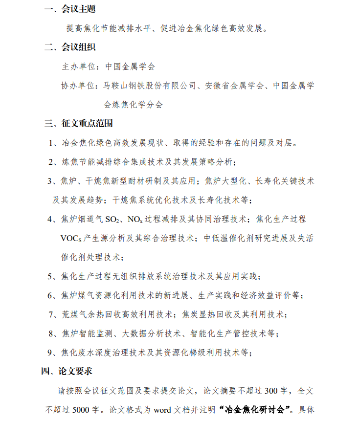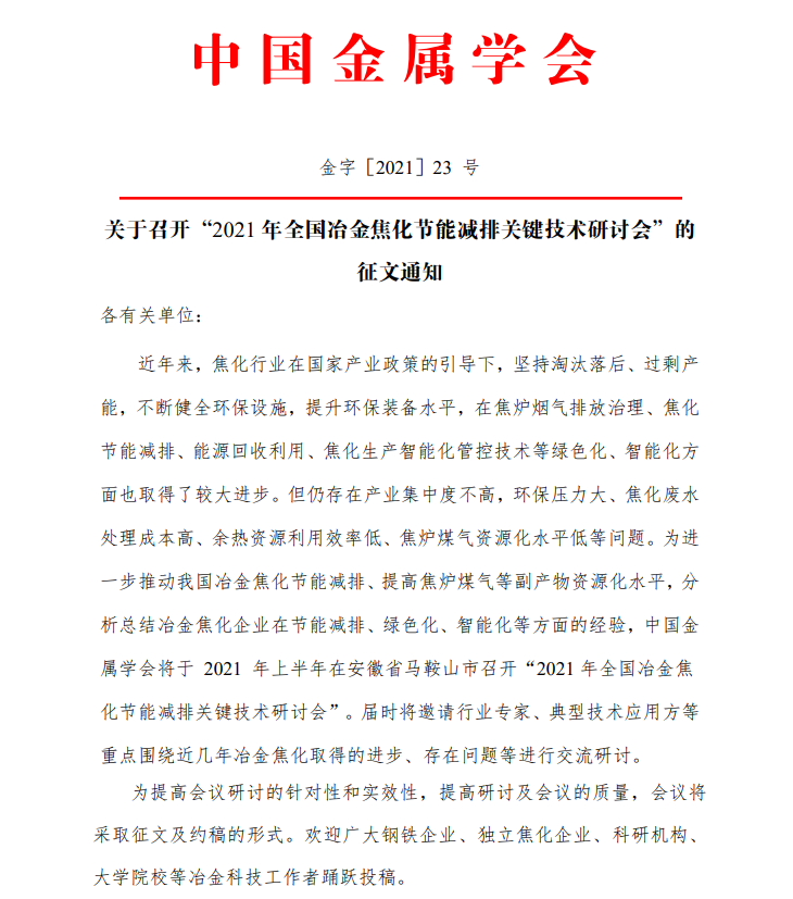 关于召开“2021年全国冶金焦化节能减排关键技术研讨会”的征文通知