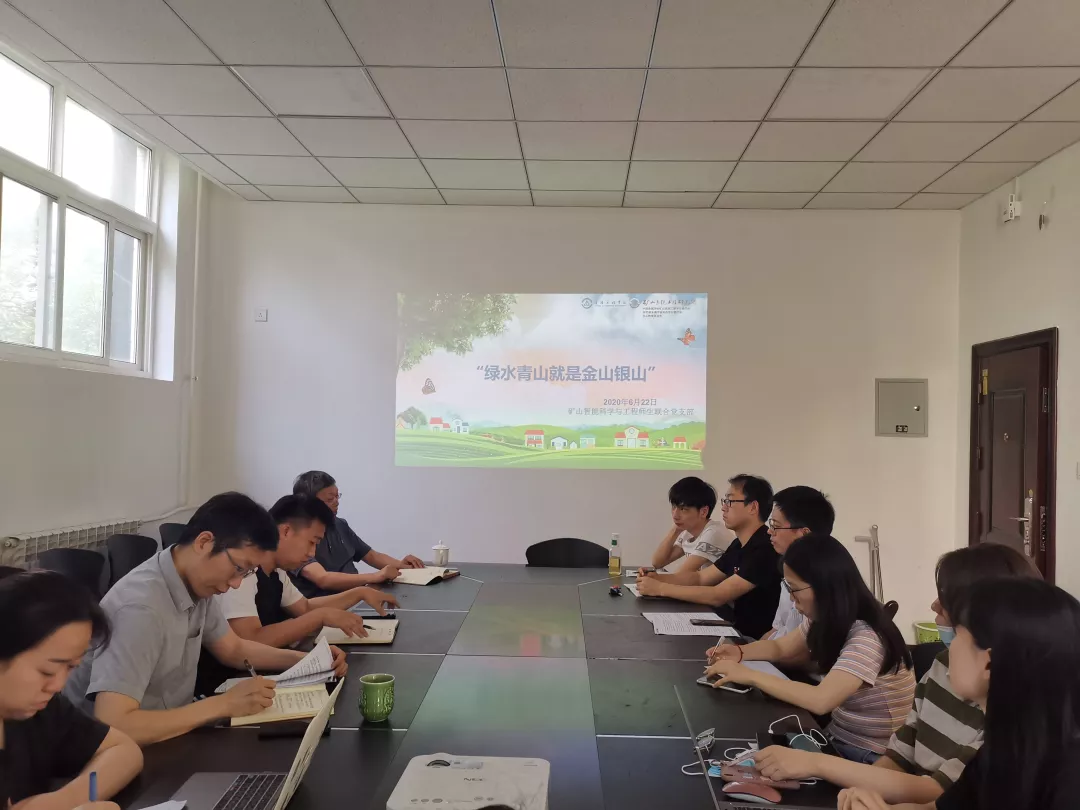本次学习的主题为“学习领会《习近平谈治国理政》第二卷关于生态文明建设的重要论述——绿水青山就是金山银山暨推进智慧矿山双创工作”。活动开始,由支部组织委员刘丹洋带领大家观看《理论达人解读十九大第49集:绿水青山就是金山银山》的视频,激励全体人员建立正确的思想观和政治观,为实现伟大梦想进行伟大斗争。接着,刘丹洋带领大家学习习近平总书记关于“绿水青山就是金山银山”的重要讲话和相关理论知识,使矿山智能科学与工程师生联合党支部成员们学习到保护生态环境是可持续发展的必要环节,以系统工程的思路抓生态建设是我们学院持续发展的必要目标。