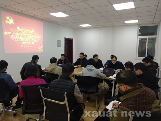 学院党组织副书记刘冠就学院前期围绕“两个专项”整治、“两个条例”学习部署及开展情况进行了汇报。会上集中学习和解读了《关于集中整治形式主义、官僚主义和开展违规收送礼金问题专项整治工作的通知》、《中国共产党纪律处分条例》、《中国共产党支部工作条例》等文件精神,并通报了部分政府及高校工作人员违规收送礼金的典型案例。针对当前秦岭生态整治工作,会议学习了《“秦岭违建”为何惊动中央?》、陕西省纪委网站在线访谈节目《集中开展违规收送礼金问题专项整治》和中央纪委网站访谈节目《<中国共产党纪律处分条例>亮点释义(一)(七)》。