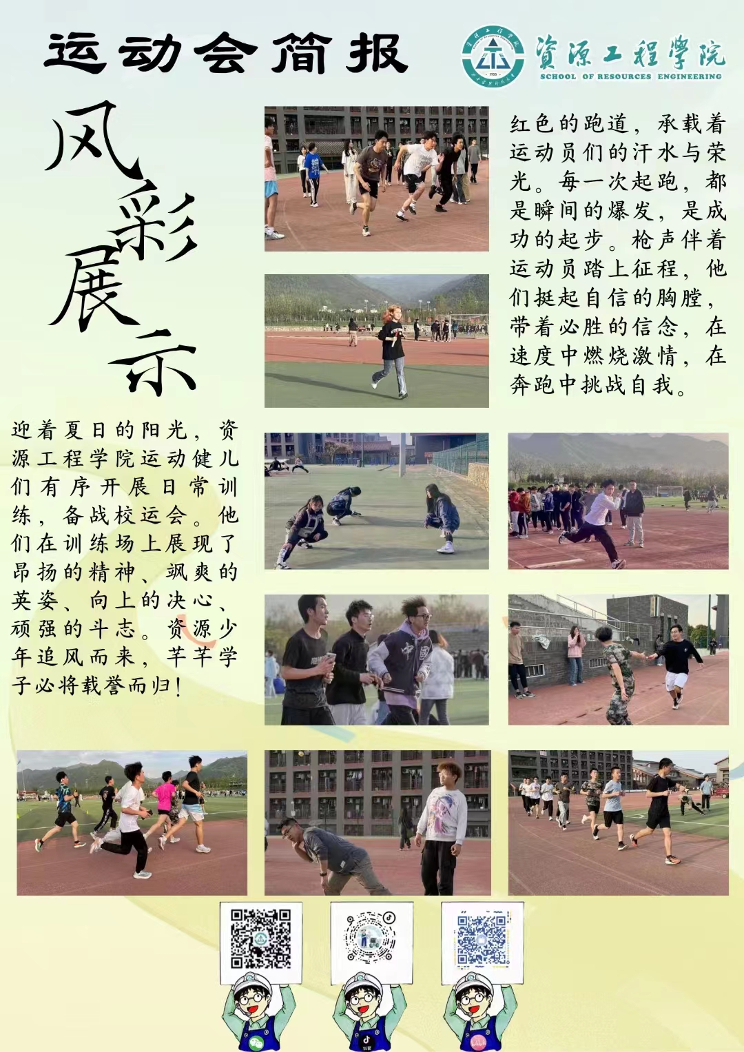 风采,培养了资源师生团结合作的精神,促进了资源学子终身体育观的形成,相信资源青年将继续发扬拼搏进取的优良作风,用最饱满的斗志、最昂扬的姿态,去赢得属于自己的精彩。结束亦是新的开始,让我们继续努力,明年再续辉煌!