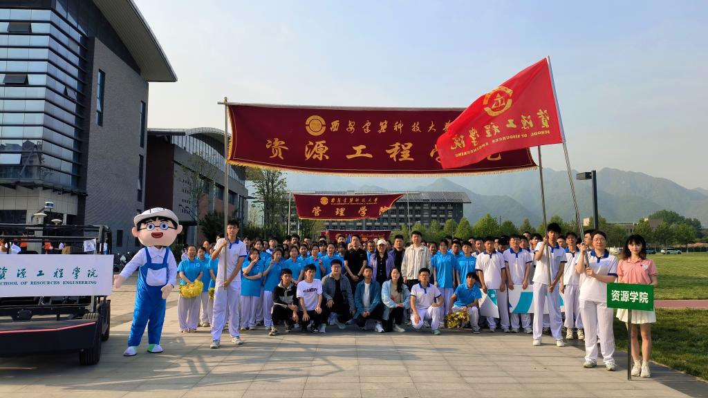 入场式方阵有序进入南山田径场,坚毅的步伐,代表的是资源人六十年矢志不渝的初心;挺拔的身姿,展现的是资源人六十年奋进拼搏的劲头。走在队伍最前列的是由学院自主研发的无人驾驶矿车模型和无人机方阵,本次入场式方阵深入结合了学院特色,引入了“小资”和“小源”两个资源吉祥物,突出学院特色。开幕式表演取得圆满地成功,也充分展现出资源学子良好的精神风貌,向全校师生传达出了“自强不息,锐意进取,奋发有为,淬火成钢”的资源精神!