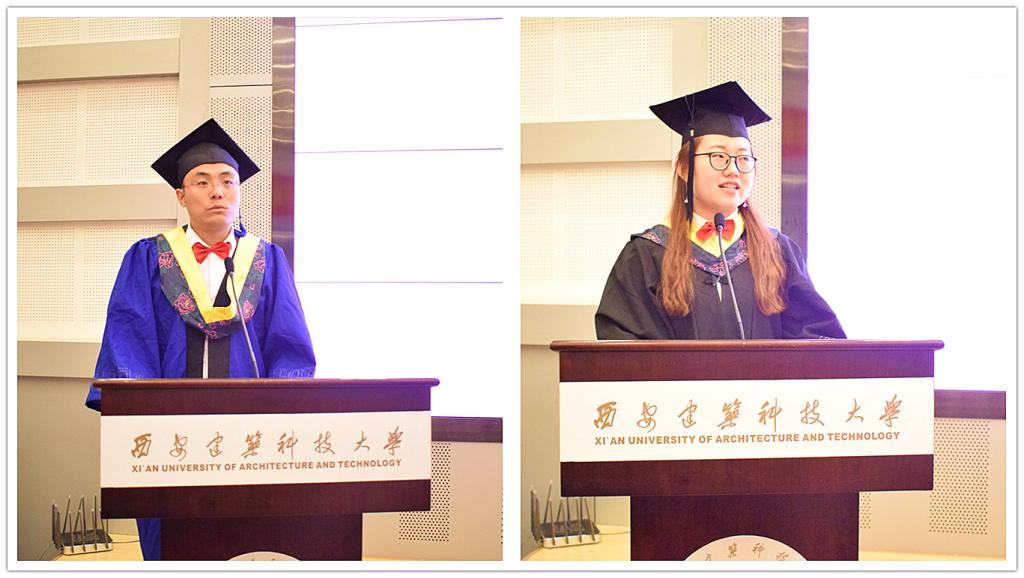 安全工程系钟兴润老师代表全体老师发言,希望全体毕业生能放大视野、铸就梦想,要依靠集体、不断学习,要脚踏实地、成就自我,收获属于自己的美好人生。