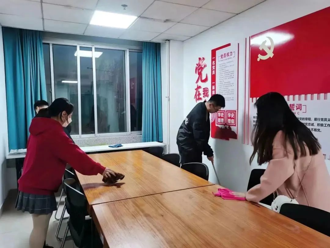 在活动开展过程中,同学们有序分配,通力合作,在雁塔校区工科楼6层指定清洁区域开展工作,对公共区域的桌椅、地面进行了全面、细致的清洁打扫、完成消杀。同学们都以饱满的热情与认真的态度对待本次活动,充分发扬“不怕苦、不怕累、不怕脏”的劳动精神,发挥研究生第一党支部战斗堡垒作用。