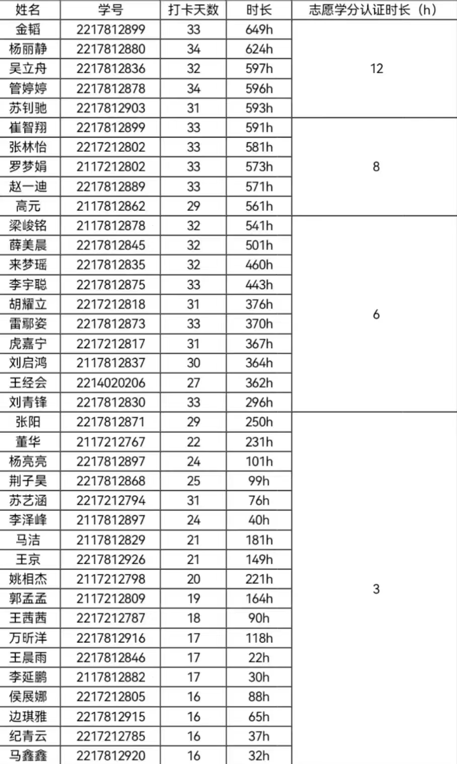 读书月打卡活动志愿时长公示