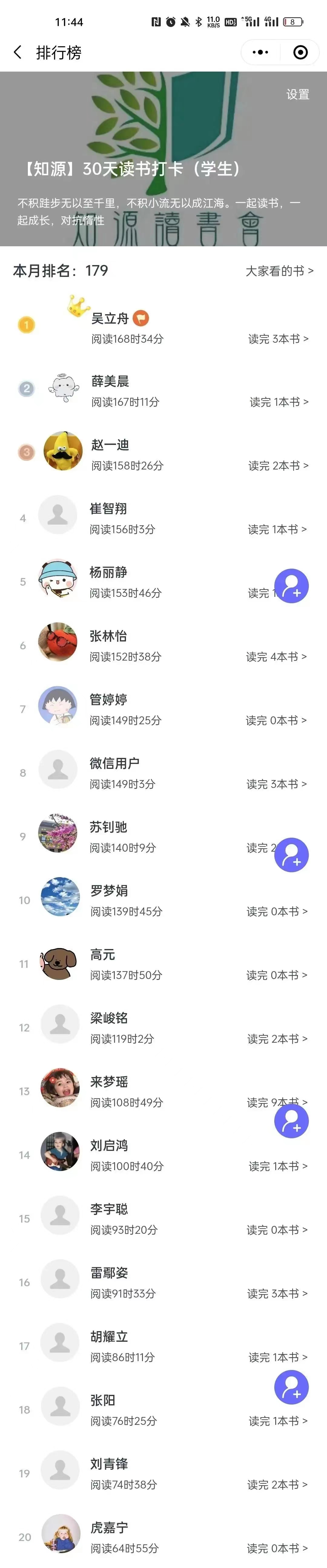 读书月活动打卡排名