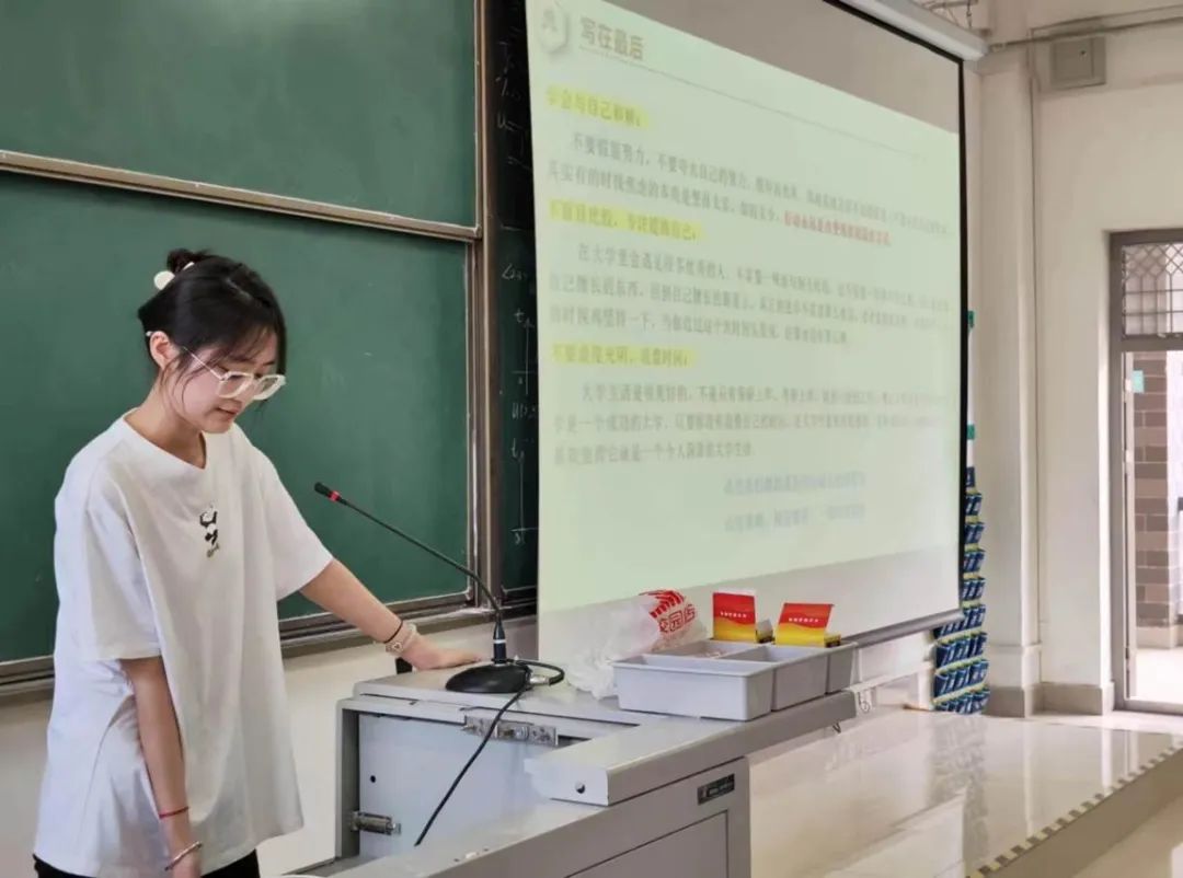 分享会上,马滢斐分别从学习规划、双创竞赛、考研备考三个方面做出了详细的分享和讲解,以自身的经历向大家分享了自己的学习方法和关于各项竞赛的准备。同时,也跟同学们分享了自己的考研复习规划,勉励同学们要时刻保持对专业学习的好奇心和求知欲。