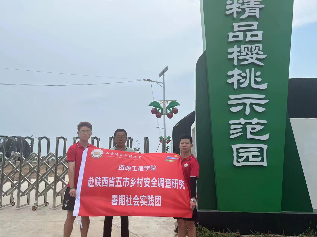 调研的最后,团队来到了周陵村,该村采用大棚培育樱桃,建有樱桃科技园。为充分利用资源,促进樱桃生产,樱桃园还运用肥水一体化技术,使用的水溶性饲料经由管道流到各处,如果推行开,可以有效地避免自然灾害对于农作物的影响。发展经济的同时,推动了乡村其他方面的进步,周陵村的应急体系建设十分完备,网格化管理深入基层,为村民的生产生活提供了最坚实的保障。