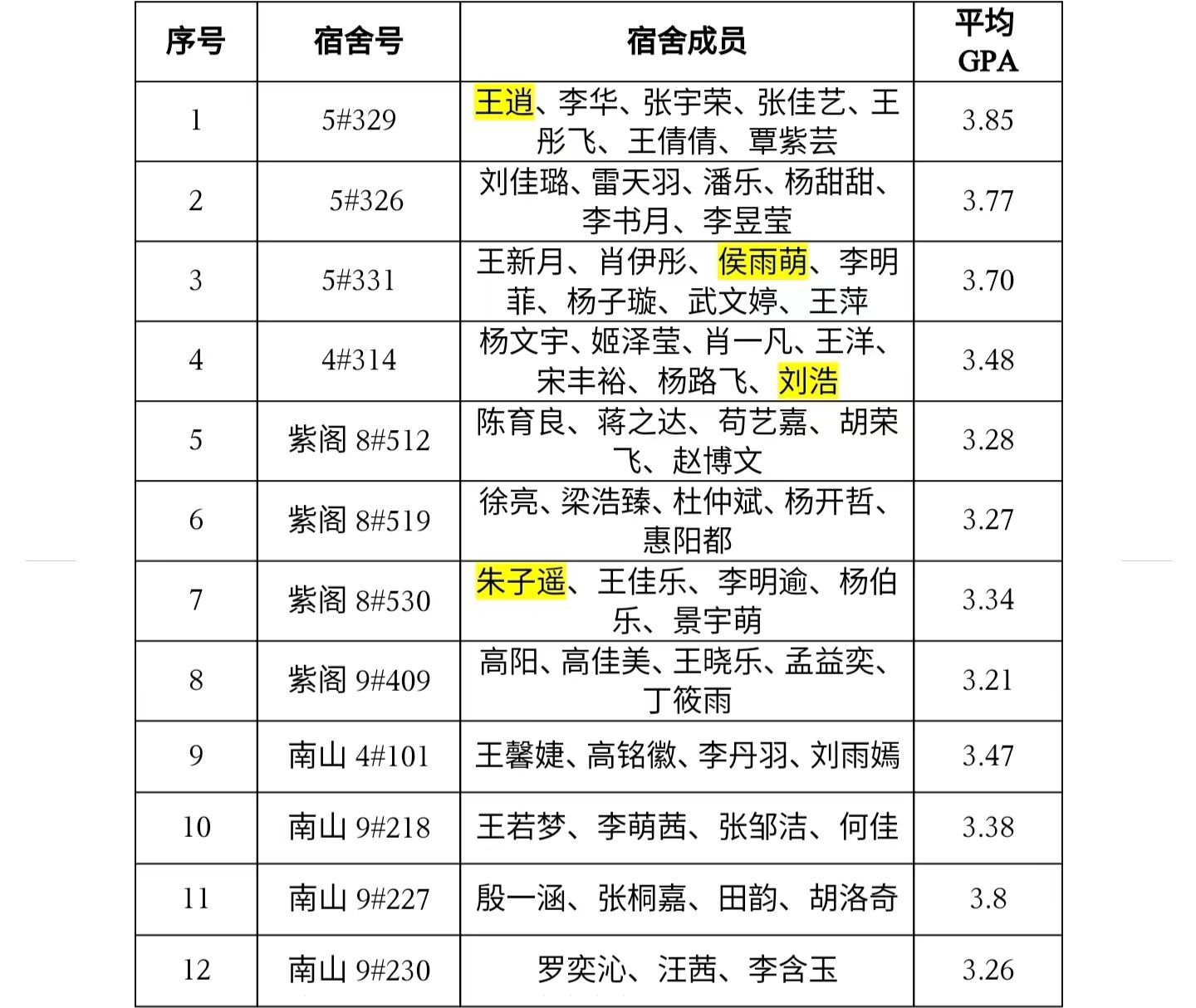 宿舍(12个)【宿舍上一学年平均学分绩点3.2 且无挂科记录】