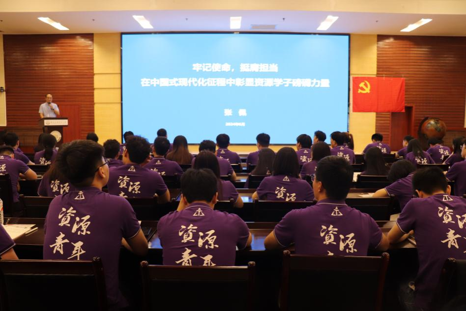 专题党课前,与会人员一同观看了微视频《1921-2021红船从南湖驶向星辰大海》。张佩以“牢记使命,挺膺担当 在中国式现代化征程中彰显资源学子磅礴力量”为题讲授党课,他从“党史回顾”、“党纪学习教育”、“中国式现代化”以及“资源学子使命担当”等四个方面,结合国内国际时政,给大家带来了一堂内涵丰富、深入浅出的专题党课。当谈及“青年党员在当前时代下如何发挥自己的作用”时,他给全体毕业生党员提出四点希望:一是有理想,资源青年要有一颗胸怀天下的赤子心,坚定初心使命,做伟大理想的追梦人;二是敢担当,资源青年要能在关键时刻冲得出来、顶得上去,甘于奉献,做伟大事业的生力军;三是能吃苦,资源青年要能够善于学习、勇于创造,做新时代的中流砥柱;四是肯奋斗,资源青年要保持永久奋斗的向上力量,做党和人民需要的先锋分子。