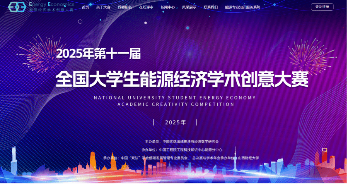 全国大学生能源经济学术创意大赛(China National College Students Competition on Energy Economics,以下简称“大赛”)是由中国优选法统筹法与经济数学研究会主办、中国“双法”研究会低碳发展管理专业委员会执行、中国科学院和高校等20余家单位共同发起的全国性赛事。2023年3月,大赛正式进入中国高等教育学会发布的《全国普通高校大学生竞赛目录》。