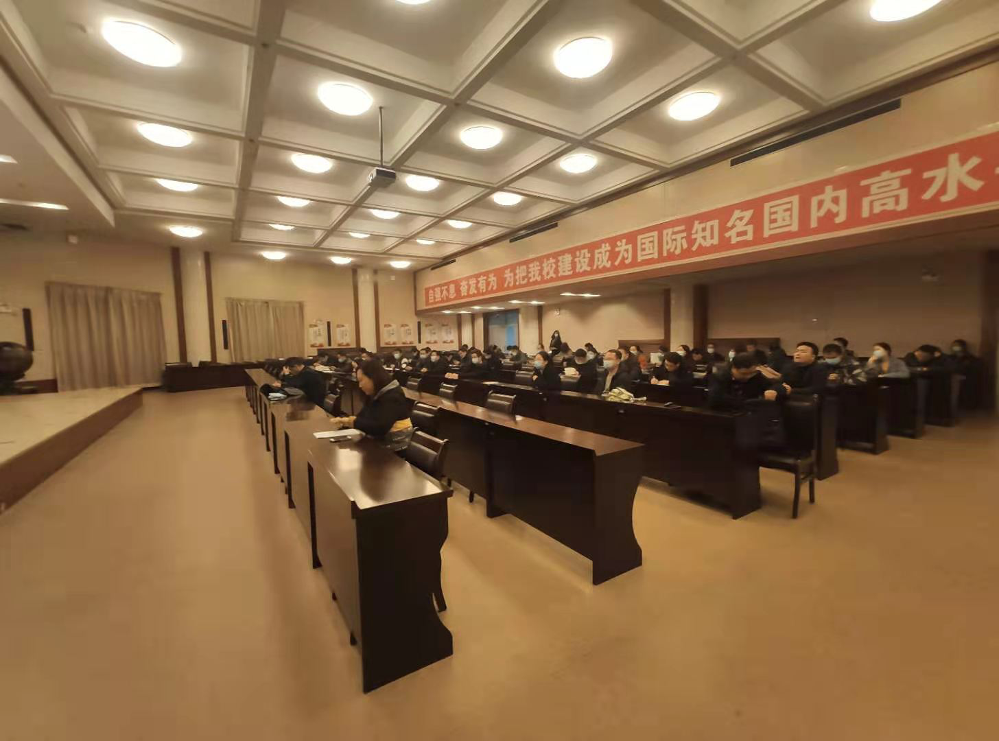院长卢才武代表学院领导班子介绍了2021年学院工作要点,通报了2020年业绩考核总体情况,并围绕学院新学期如何加强考勤管理、提升工作效能、营造良好学风等问题进行了安排与部署。