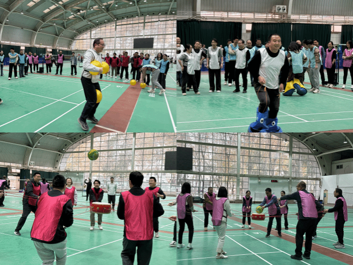 活动伊始,参赛教职工通过彩色便利贴随机分组,迅速组建起四支充满活力的竞赛队伍。各队在短时间内充分发挥集体智慧,拟定出各具特色的队名与口号,展现出良好的团队凝聚力和创造力。随后的趣味竞赛环节设计巧妙、内容丰富。“企鹅漫步”考验个人平衡与团队配合,“巨人脚步”强调步调一致与协同前进,“同心击鼓”则重在培养信任与默契。教职工们在比赛中全情投入、互相鼓励,现场掌声、笑声、欢呼声此起彼伏,充分体现了“友谊第一、比赛第二”的体育精神。经过激烈而愉快的角逐,趣味运动会在欢呼声中顺利结束。