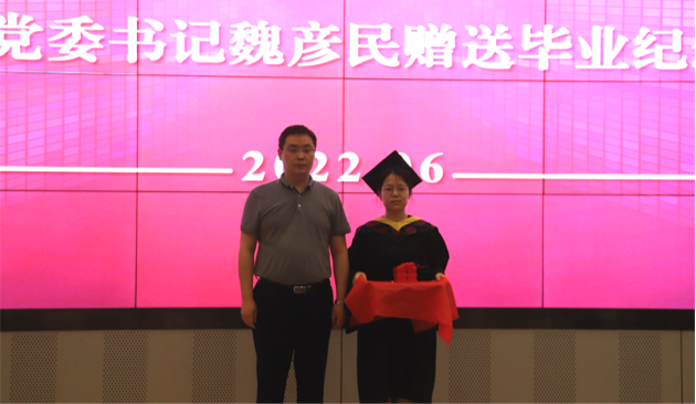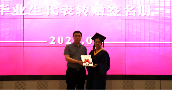 学院党委书记魏彦民代表学院向毕业生赠送了毕业纪念章,并接受了由全体毕业生共同赠予学院的毕业季签名纪念册。