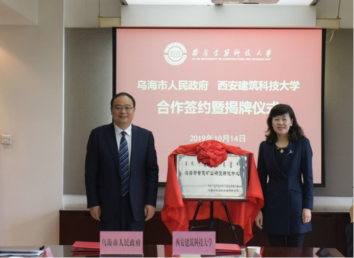签约仪式后,双方举行了“乌海市驻西安人才工作站”及“乌海市智慧矿山研究孵化中心”揭牌仪式。双方将以此次签约暨揭牌仪式为契机,充分发挥高校、地方等方面的资源优势,不断深化政产学研一体化,取得“校企合作、共创双赢”的丰硕成果。