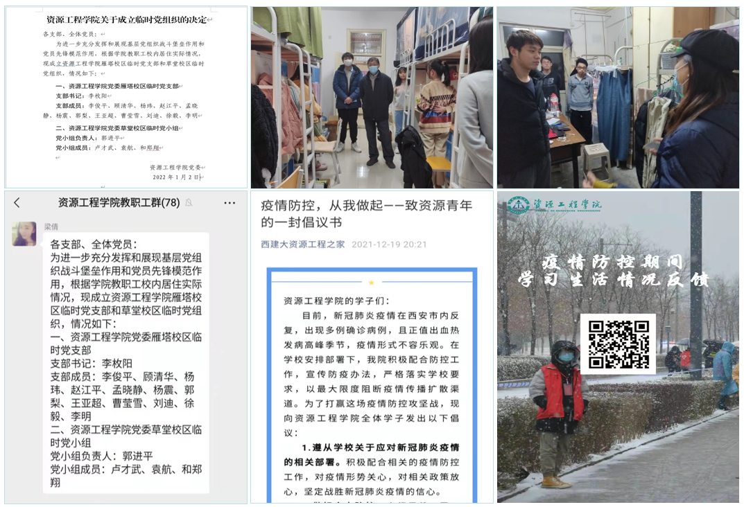全体师生坚决贯彻落实学校疫情防控工作部署,党政班子齐抓共管,围绕建稳定秩序、抓教风学风、营凝心氛围、树表率先锋四个方面,多举措、多方式开展行动,全体师生用实际行动“接力抗疫”,共同构筑了资源学院疫情防控的坚实堡垒。