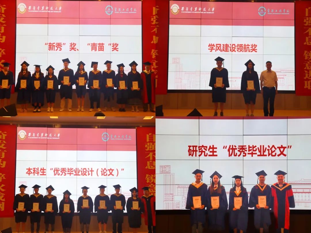师生荣誉授予实施方案》。在典礼上,隆重表彰了研究生“优秀毕业论文”、本科生“优秀毕业设计(论文)”、“新秀”奖、“青苗”奖、学风建设领航奖等奖项的获得者,尤其是针对毕业生在就业选择中,赴西部、基层和国家重点行业就业的学生代表,学院授予“基层就业先进个人”荣誉,由学院党政班子成员为优秀毕业生颁奖,以榜样的力量激励广大青年学子追求卓越,奋发图强。