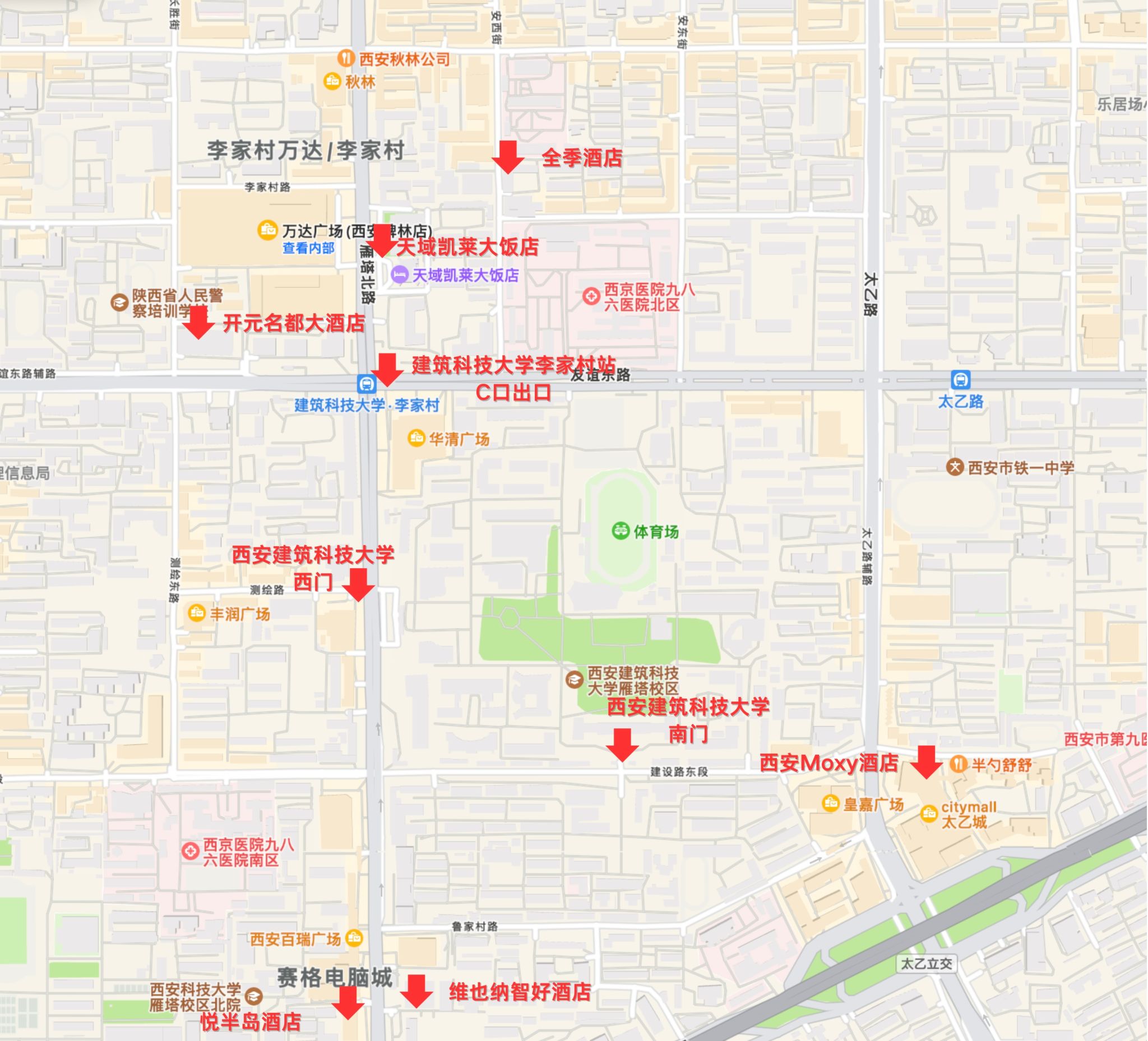 2.从西安北客站可乘坐地铁4号线到达建筑科技大学•李家村站出站,即可到达我校雁塔校区;