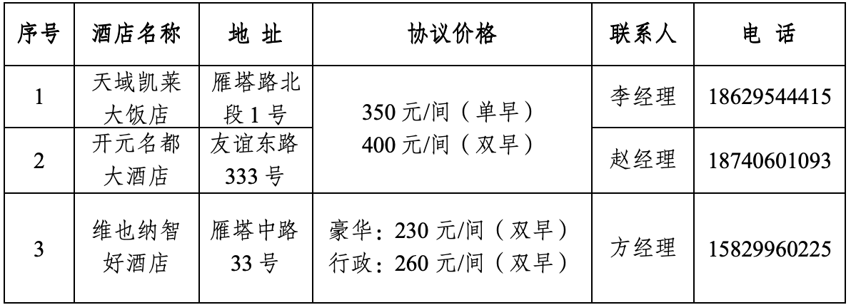 本次会议不收取任何费用,大会协议酒店如下,住宿自理,请与酒店联系人联系预订。