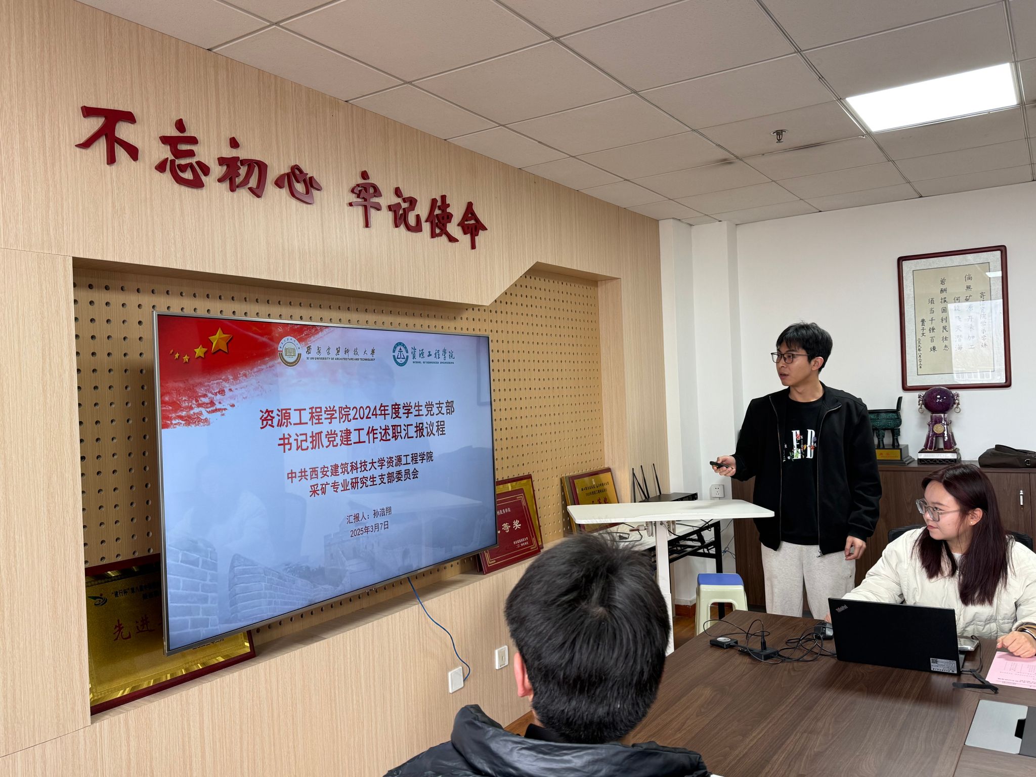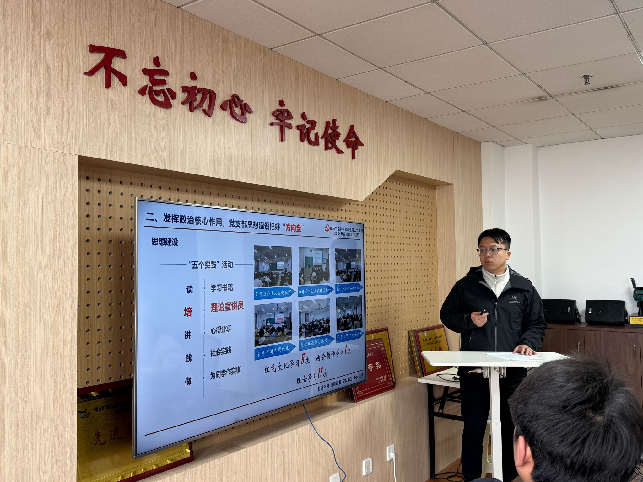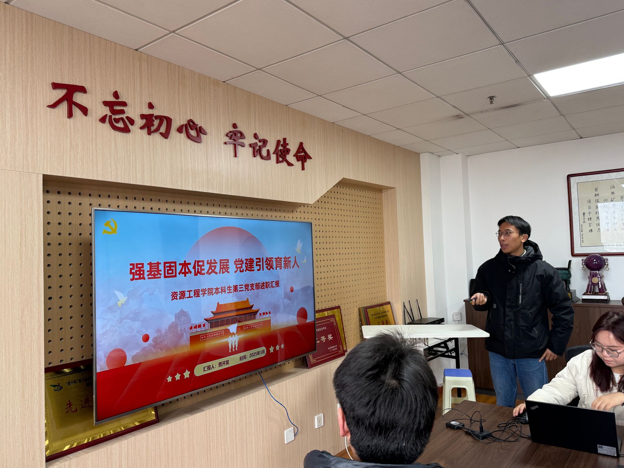 张佩对各学生党支部在过去一年取得的成绩表示肯定,并对大家的辛苦付出表示感谢。张佩指出,目前学校正值冲刺“双一流”的关键时期,每一位资源师生都应深刻认识到自身肩负的责任,将个人发展紧密融入到学校与学院的发展大局之中。同时,张佩对各党支部提出了四点期望:一是抓学习,要常态化开展党的政治理论学习,筑牢思想根基,在思想建设的征程中始终把稳前行方向。二是重实践,要在学习中思考、在思考中实践、在实践中反思,不断深化对理论知识核心要义的理解。三是强作为,要充分发挥支部战斗堡垒作用与党员先锋模范作用,激发全体师生的积极性与创造力,推动学院各项工作全面发展。四是创特色,要聚焦支部建设,立足专业、年级等特点,凝练支部特色党建育人品牌,助力学院党建工作迈上新台阶。