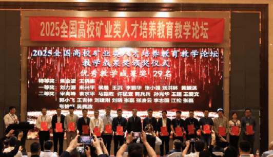 论坛举办期间,同步评选了矿业类优秀教育教学成果,我院副院长江松教授申报的教学成果《“三维驱动·四维协同”的智能采矿研究生人才培养模式的重构与实践》荣获2025全国高校矿业类人才培养教育优秀教学成果二等奖。会议期间,学院教师团队结合大数据系特色,围绕“智能化矿山设计”、“矿业与信息技术融合”等方向与同行高校专家展开深度交流,针对智能采矿工程专业课程建设、校企“双导师”育人机制等议题,与行业顶尖团队交换实践经验。