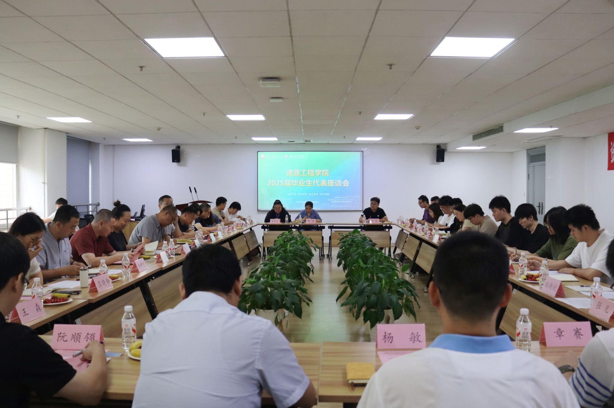 座谈会伊始,院长顾清华向圆满完成学业的毕业生致以热烈祝贺。他强调学院始终以学生成长为核心,希望通过此次座谈搭建沟通桥梁,汲取毕业生的青春智慧,为学院发展注入新动能。并对毕业生提出三点希望:一是坚守责任担当,在服务社会中发扬资源精神,用行动诠释青年一代的时代答卷;二是永葆求知之心,以勇攀高峰的姿态深耕专业领域,在各自岗位上持续精进、追求卓越;三是常怀感恩之心,情系母校,为学院的发展建言献策。
