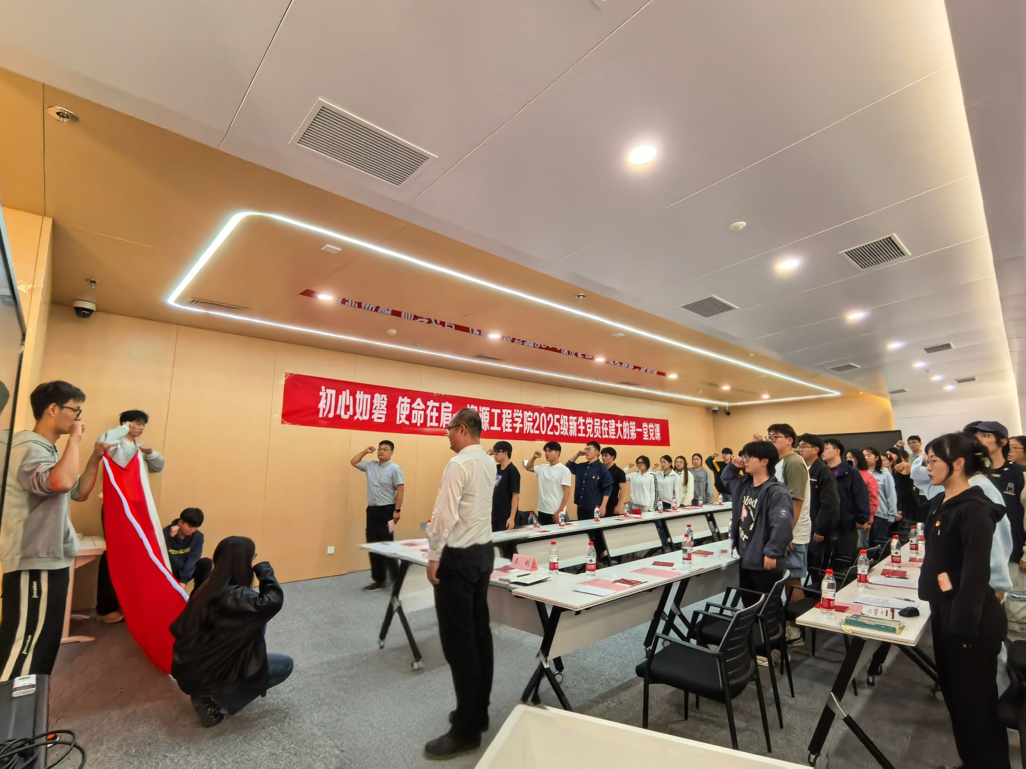 初心如磐担使命,奋楫笃行启新程。相信各位党员同志一定能够以此次“新生党员在建大的第一堂党课”为起点,坚定理想信念,肩负时代责任,勇做实现中华民族伟大复兴的先锋力量。