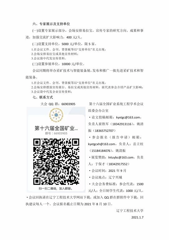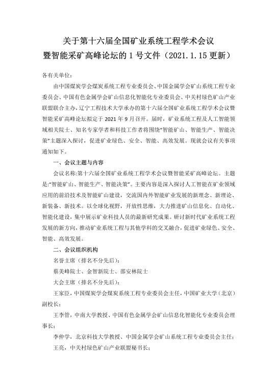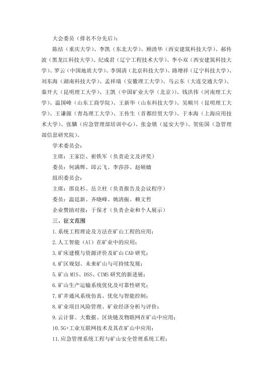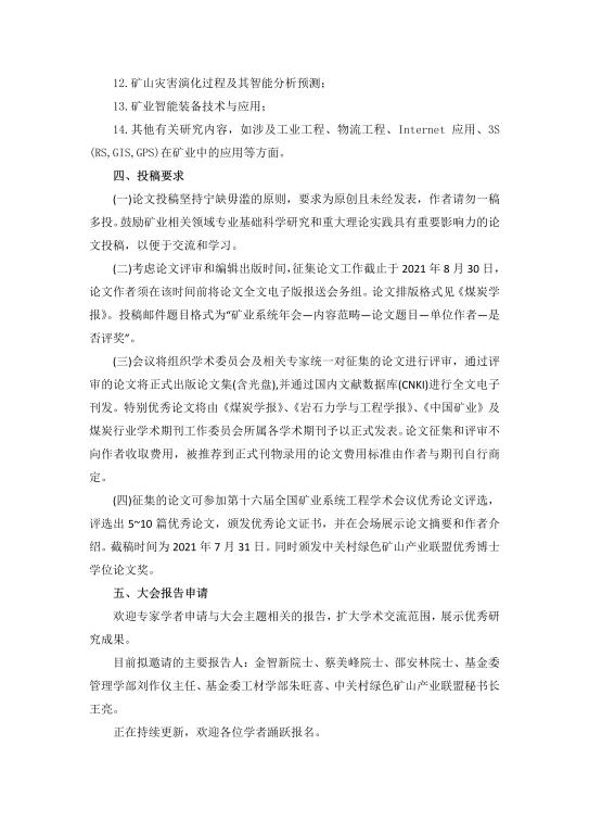 上一条: 第35届全国高校采矿工程专业学术年会 下一条:关于举办2021全国矿山安全预警和应急救援技术与装备交流会的通知