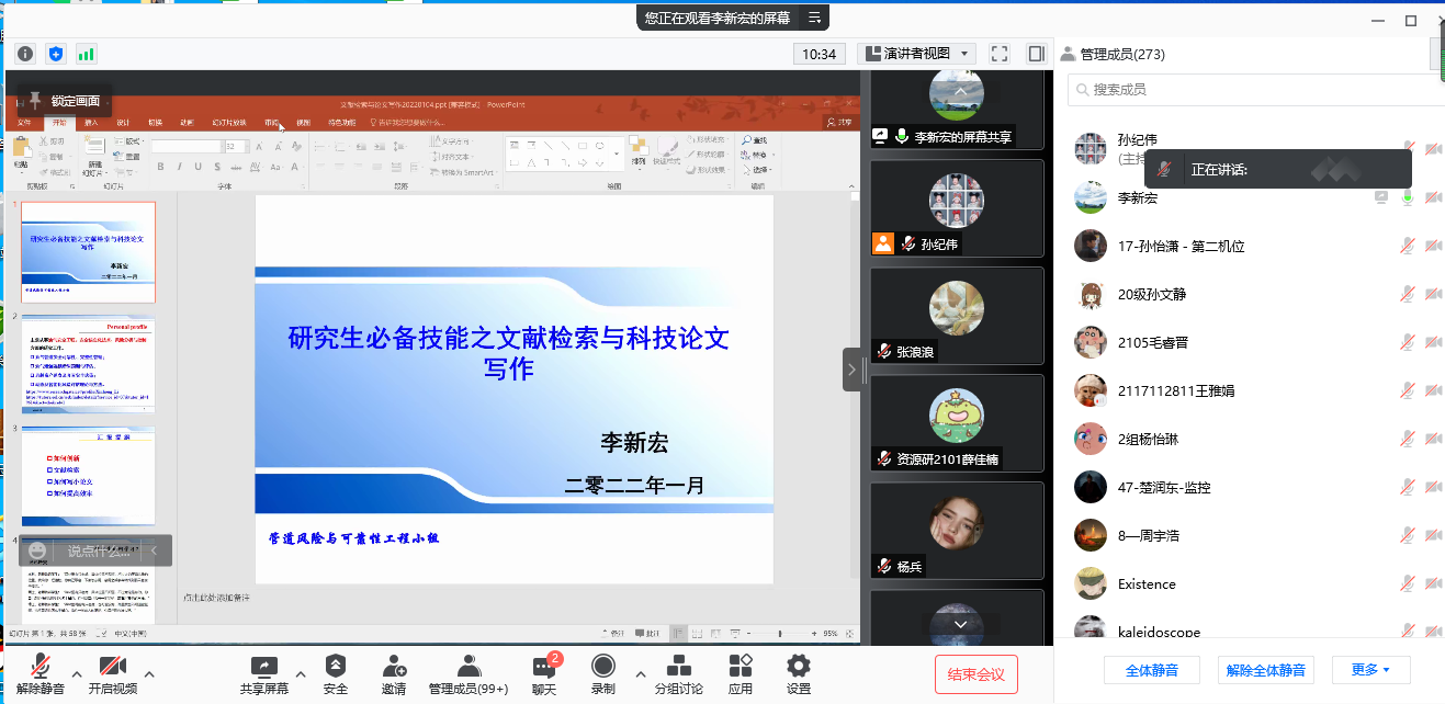 近期开展系列学术讲座活动。李新宏、章赛、邓莎三位老师老师分别于1月5日—11日通过线上的方式为学院师生作了主题分享交流。全体研究生参与此次交流活动。