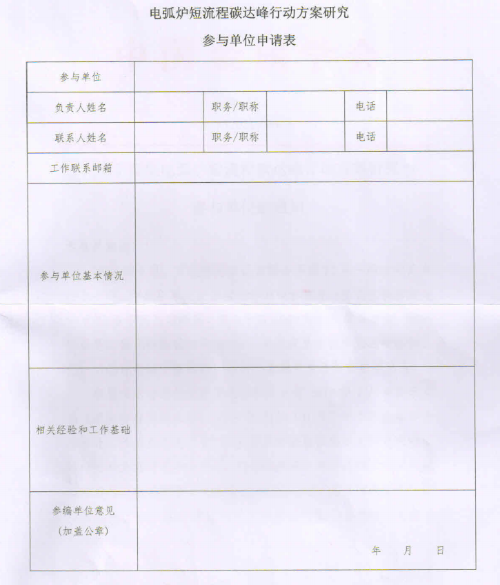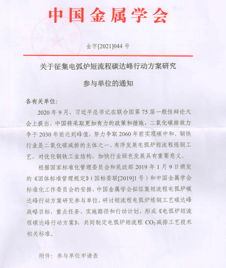 关于征集电弧炉短流程碳达峰行动方案研究参与单位的通知