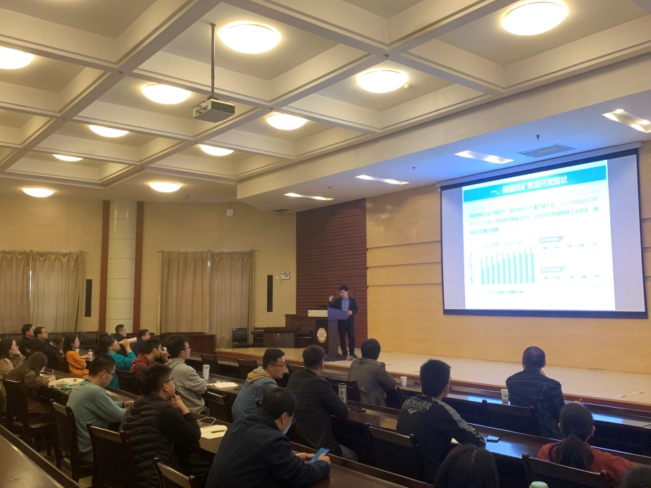 特邀东北大学孙永升教授在工科楼三楼报告厅作了题为《复杂难选铁矿资源高效清洁利用共性创新技术》的学术报告。本次报告会学院矿业类专业教师及研究生共计50余人参加,报告会由学院副院长卜显忠主持。