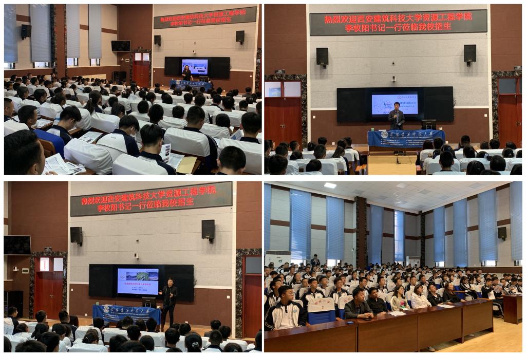 招生宣传期间,学院副书记李枚阳向榆林市几所重点中学的师生详细介绍我校办学历史、专业特色、师资优势、科研水平、校园生活、学子风采等,同时也邀请中学师生到我校进行参观交流。陈天星、江松两位老师向榆林市第一中学400余名师生分别做了题为《资源绿色高值利用与生态修复》、《大数据管理与应用专业发展前沿》科普讲座,并介绍了相关专业的发展前景。